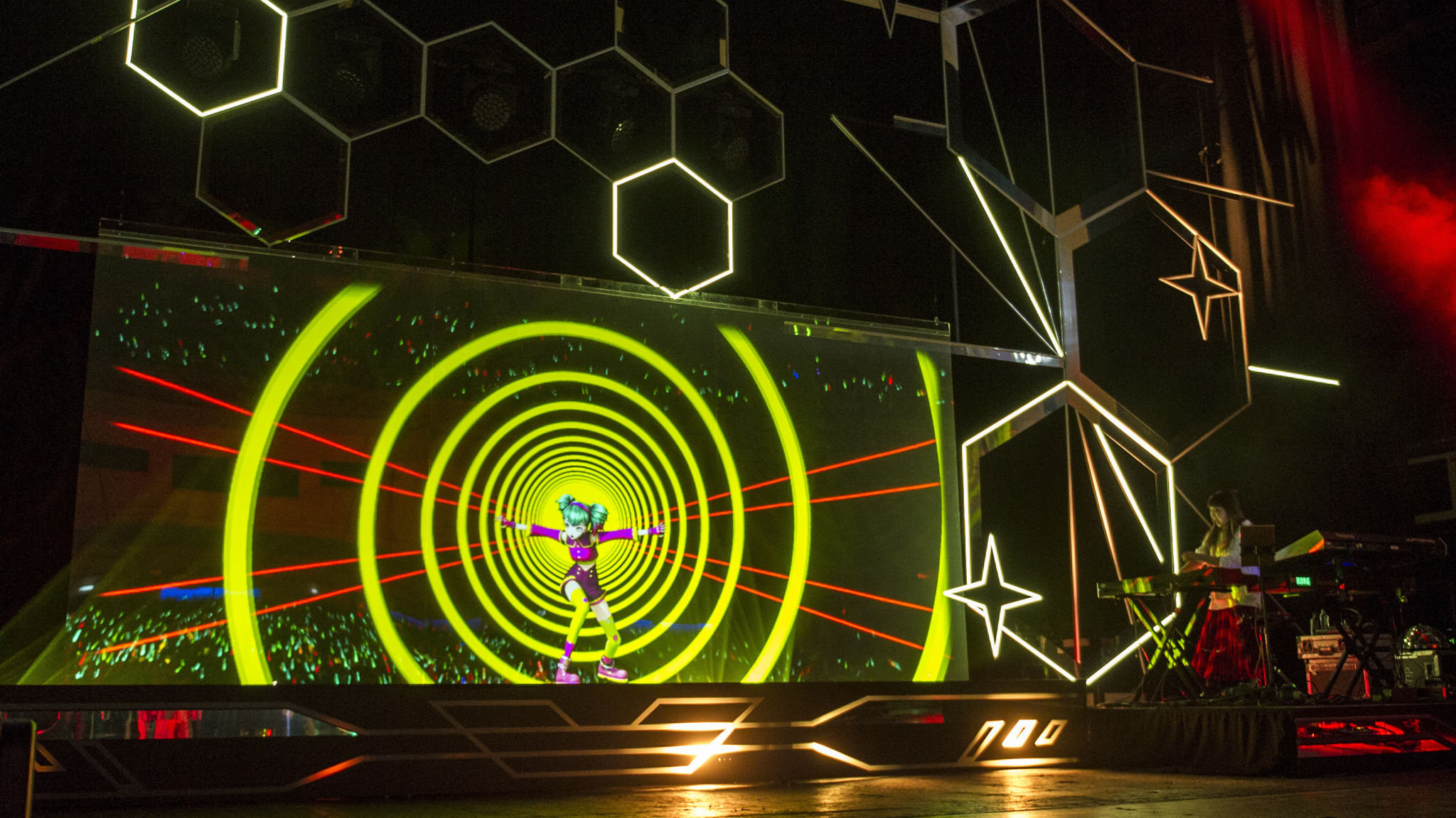 Japanese Virtual Singer Hatsune Miku Performs On Stage During A