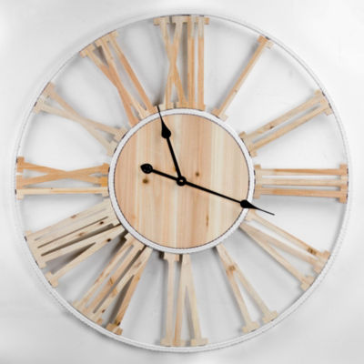 Wood Metal Round Roman Numeral Wall Clock Color Tan Jcpenney