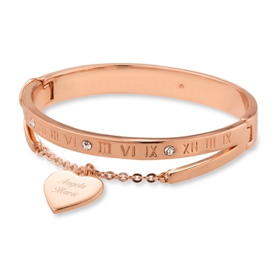 Rose Gold Roman Numeral Heart Chain Layer Bangle