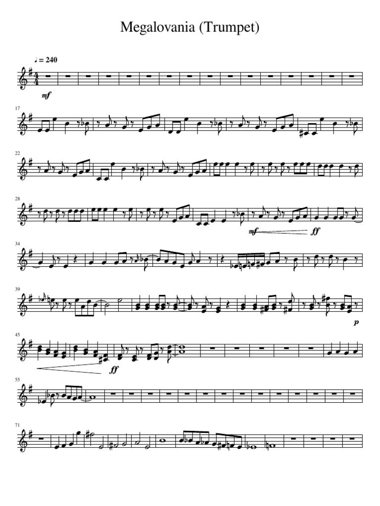 Megalovania Sheet Music For Trumpet Baritone Horn Tuba