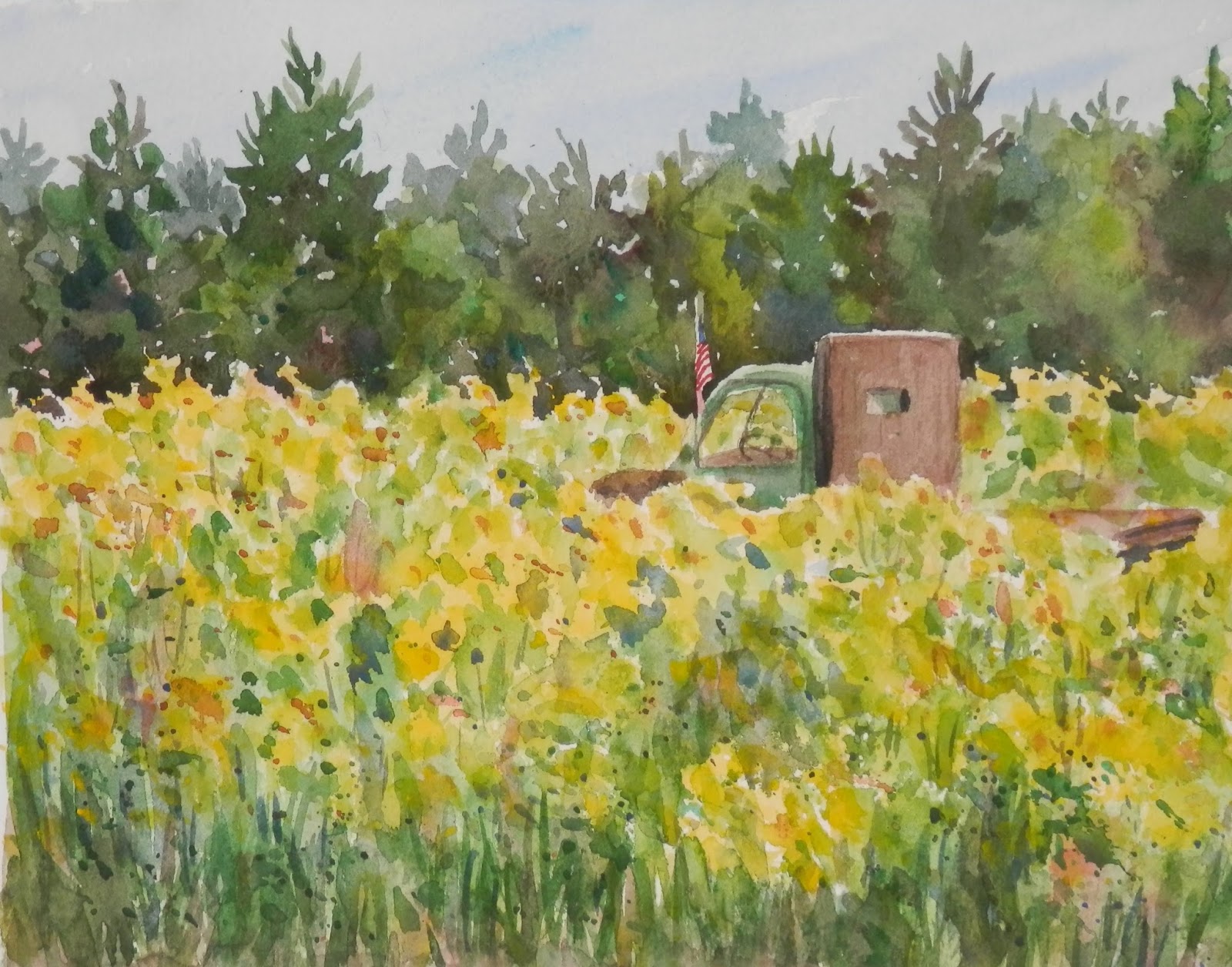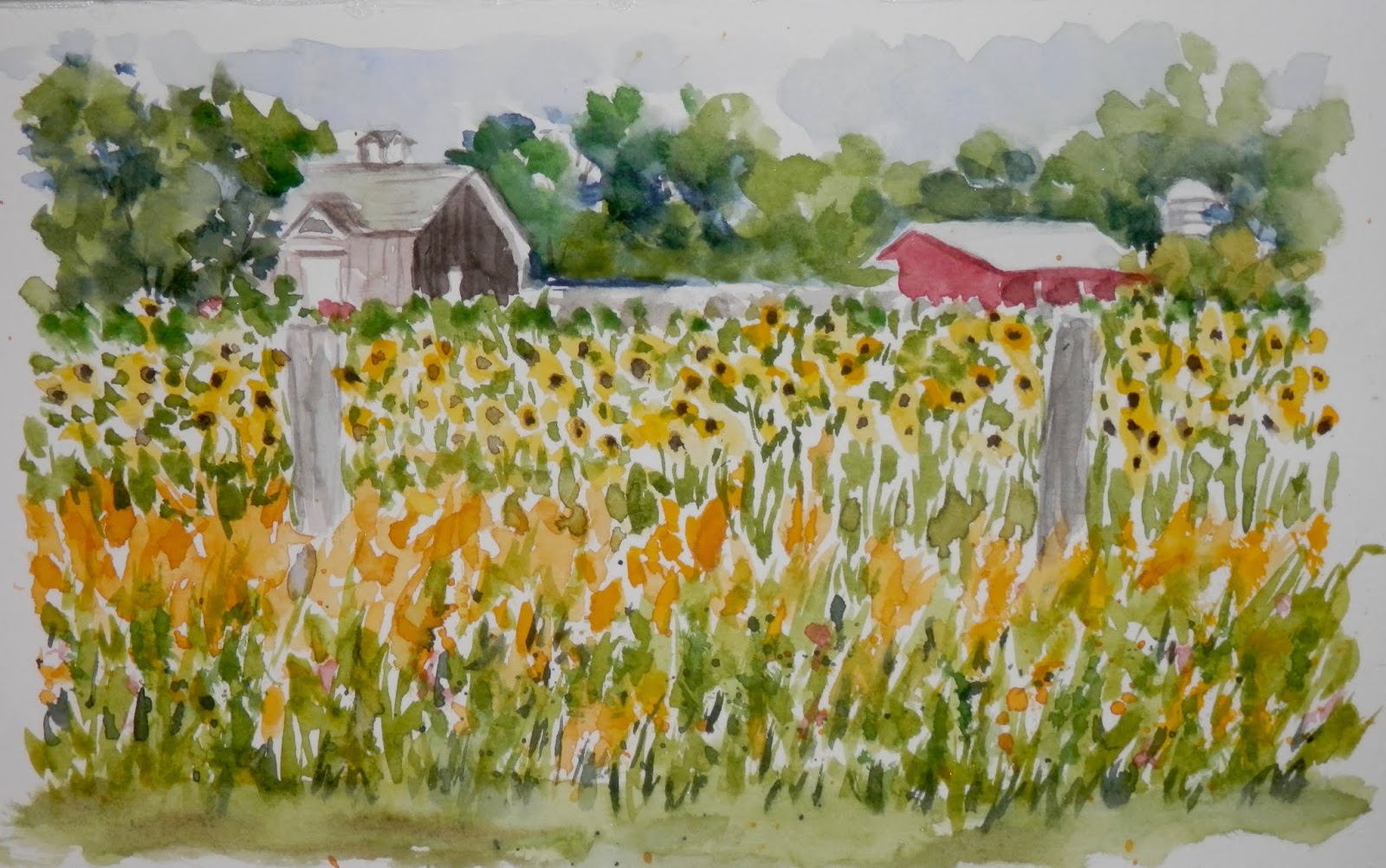 Sunflower Fields A Watercolor Painting By Bro Halff Simpler
